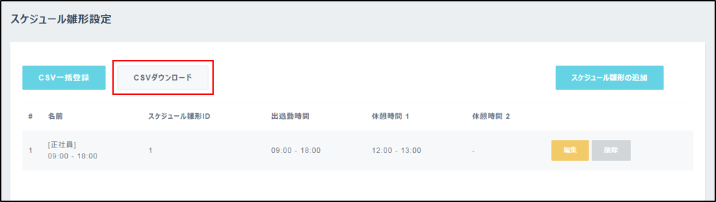 1.[CSVダウンロード]をクリックして、フォーマットをダウンロードします。