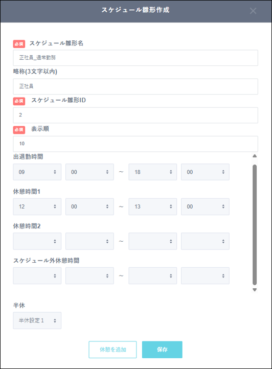 半休設定にて作成したマスタがプルダウンに表示されます。