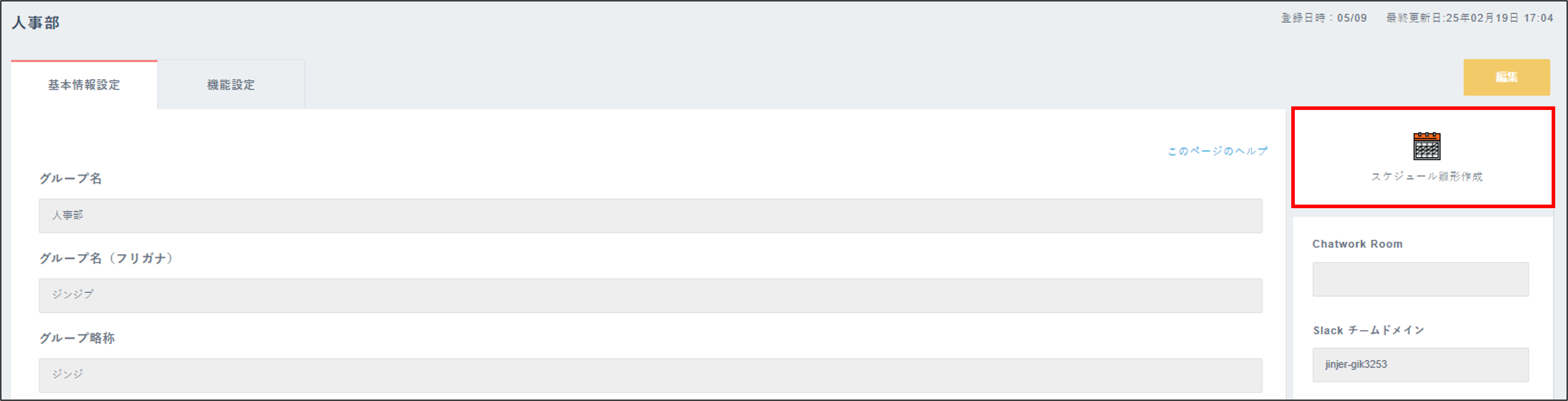 【設定箇所】打刻グループ>打刻グループ名>スケジュール雛形作成