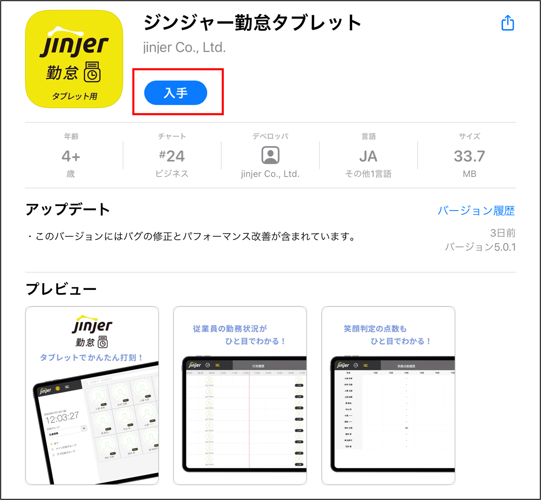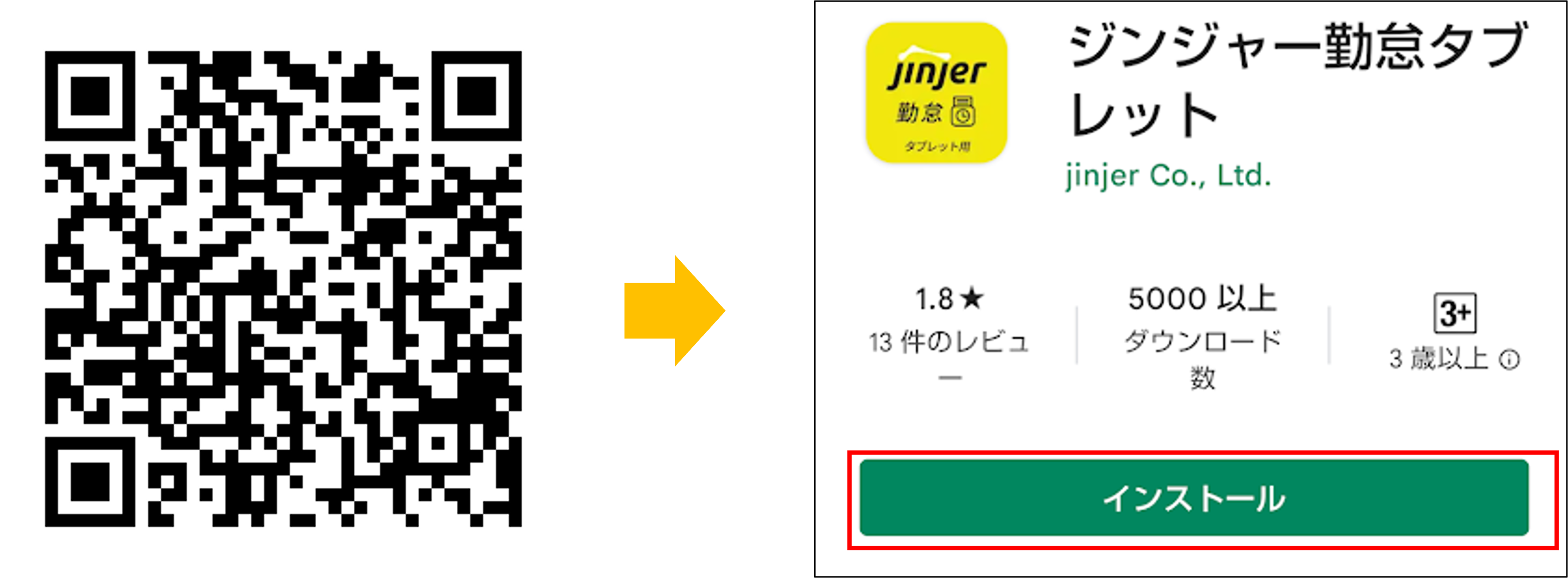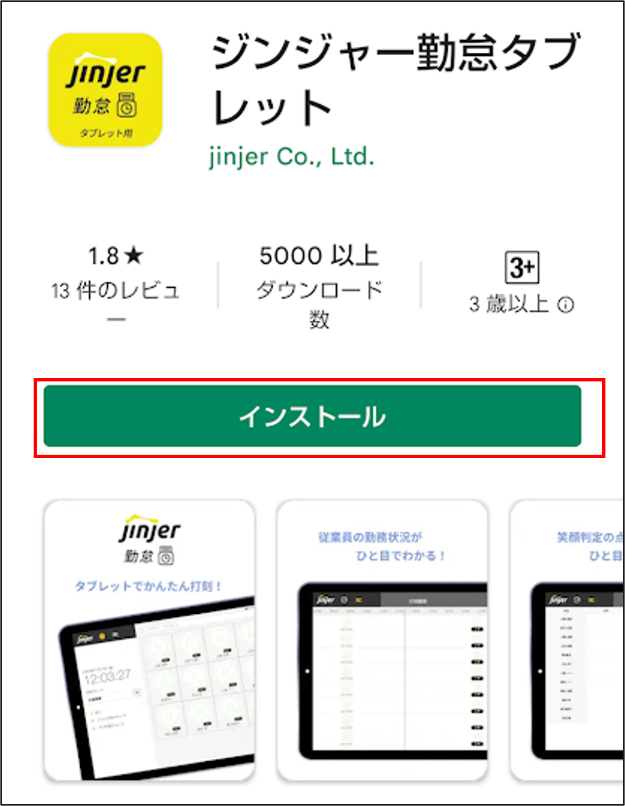 2.「ジンジャー勤怠スタッフタブレット」をインストールします。