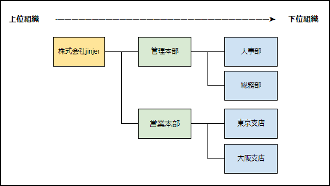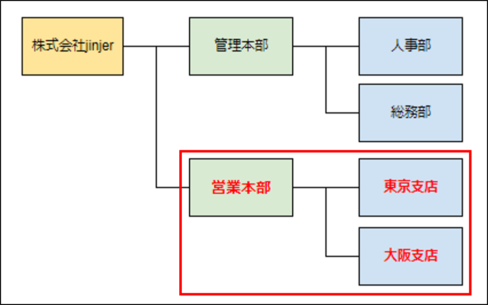 営業本部より下位階層の「東京支店」と「大阪支店」も検索条件に自動で選択された状態となります。