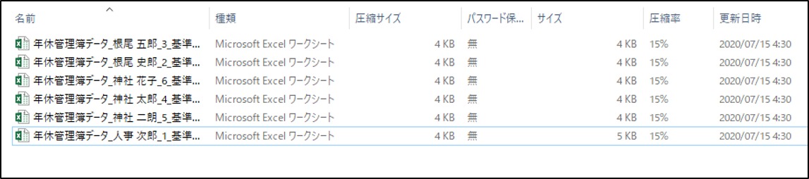 該当メニュー:休日休暇設定>年次有給休暇取得一覧