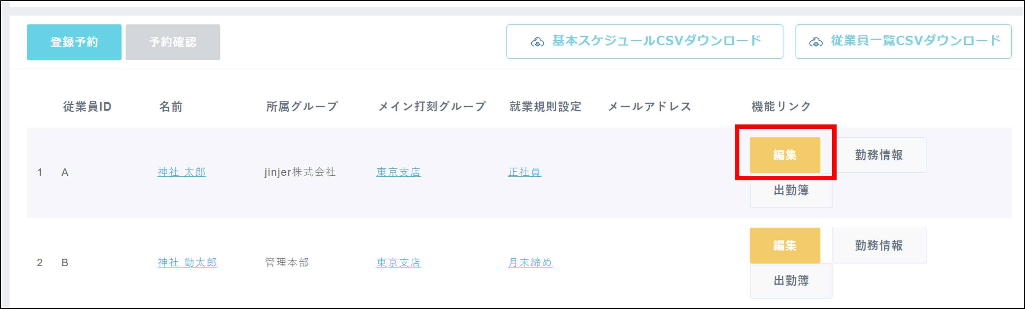 グループ管理者権限やスケジュール・実績閲覧/編集権限を付与された従業員は、