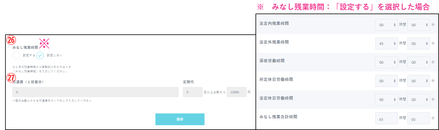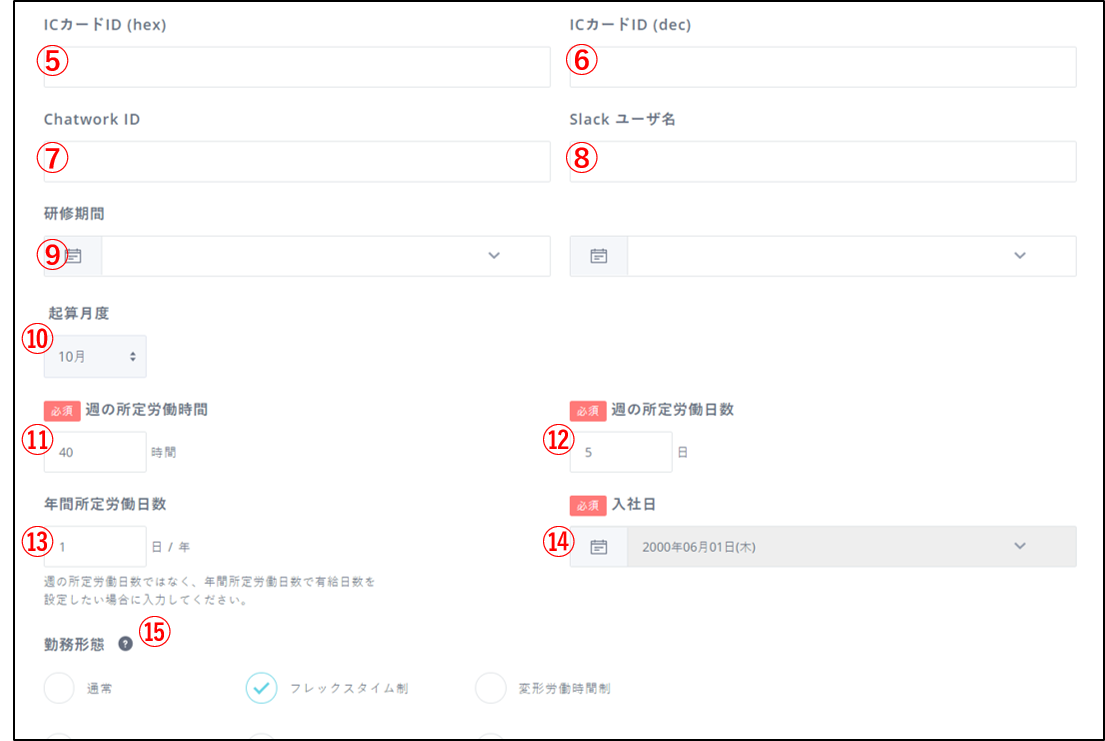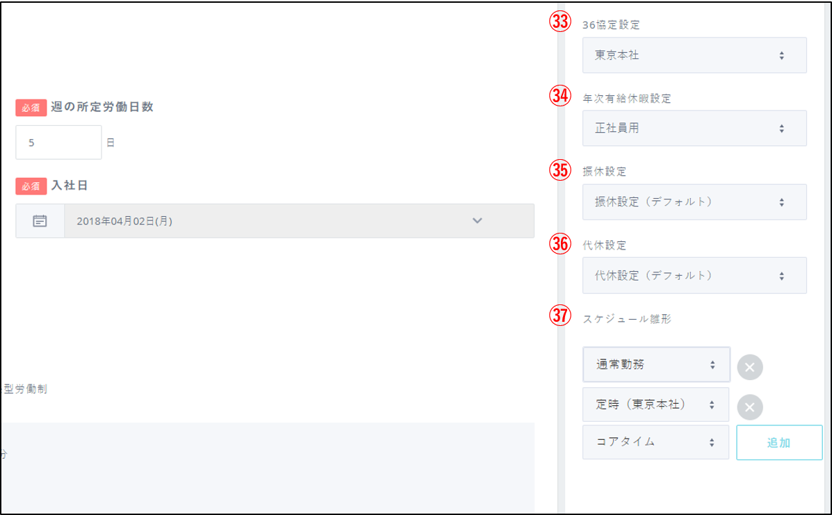 勤務形態が「通常」「変形労働時間制」「裁量労働時間制」の従業員のみ設定できます。