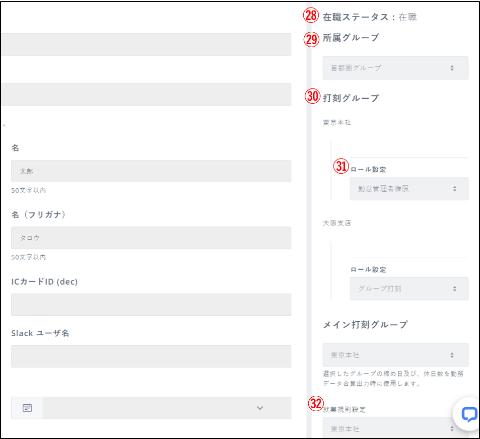 従業員設定>従業員一覧>編集