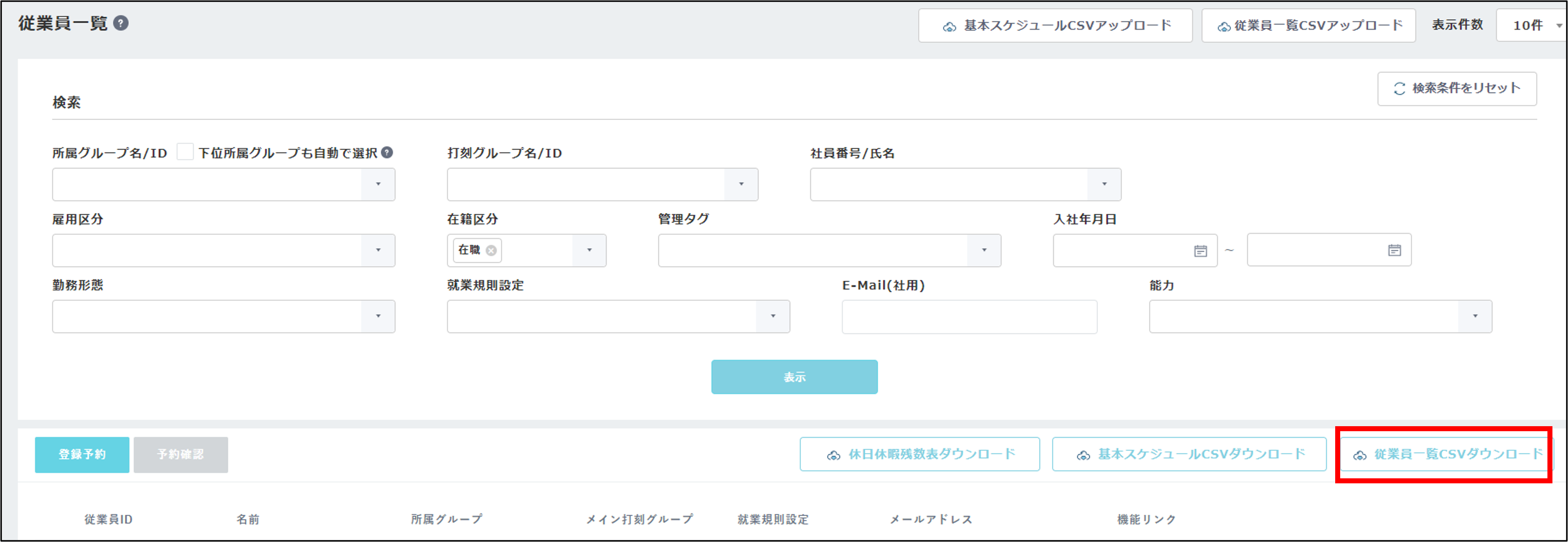 2.[従業員一覧ダウンロード]をクリックし、フォーマットをダウンロードします。