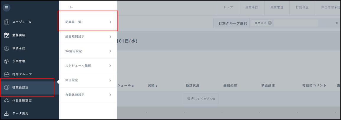 ※勤務形態が「通常」「変形労働時間制」「裁量労働時間制」の従業員のみ適用されます。