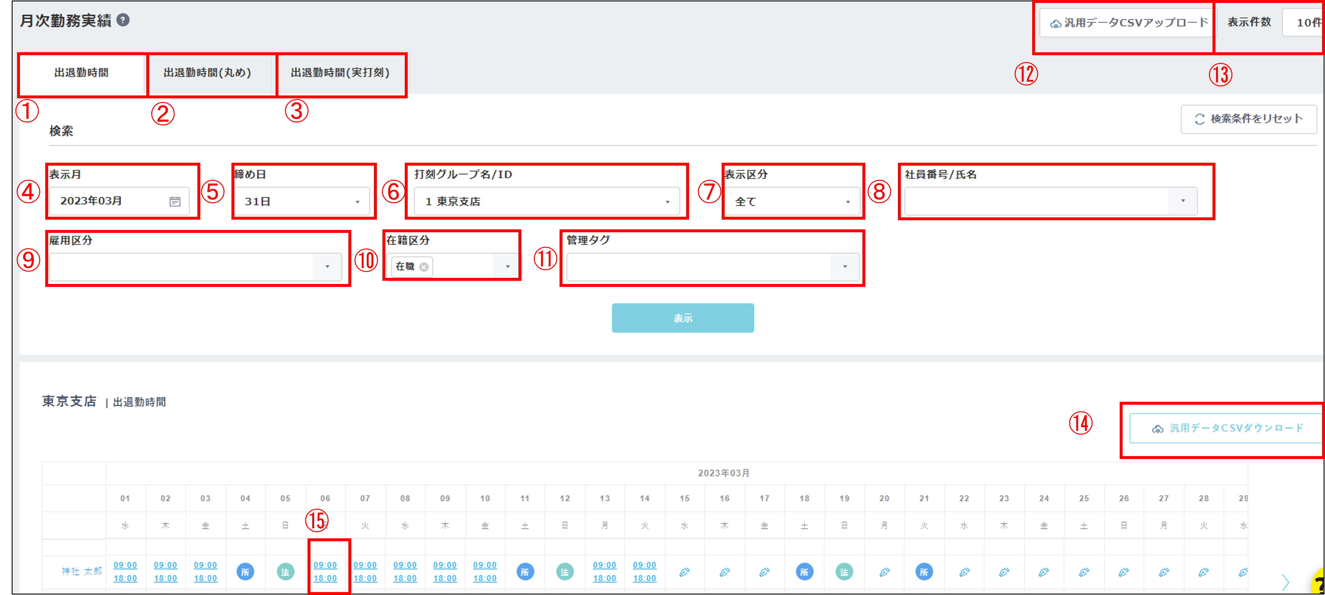 ・実打刻の実績やまるめが適用された実績を確認したい