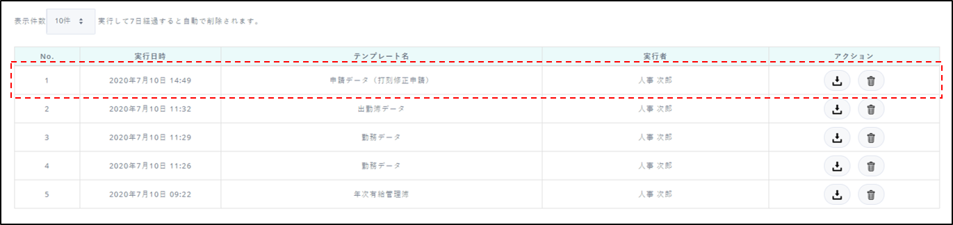 5.レポート処理結果一覧へ遷移します。出力を行ないます。