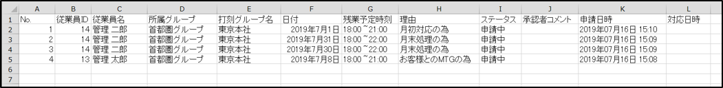 本ページでは、ジンジャー勤怠の各種申請データをCSVファイルで出力する方法を説明します。
