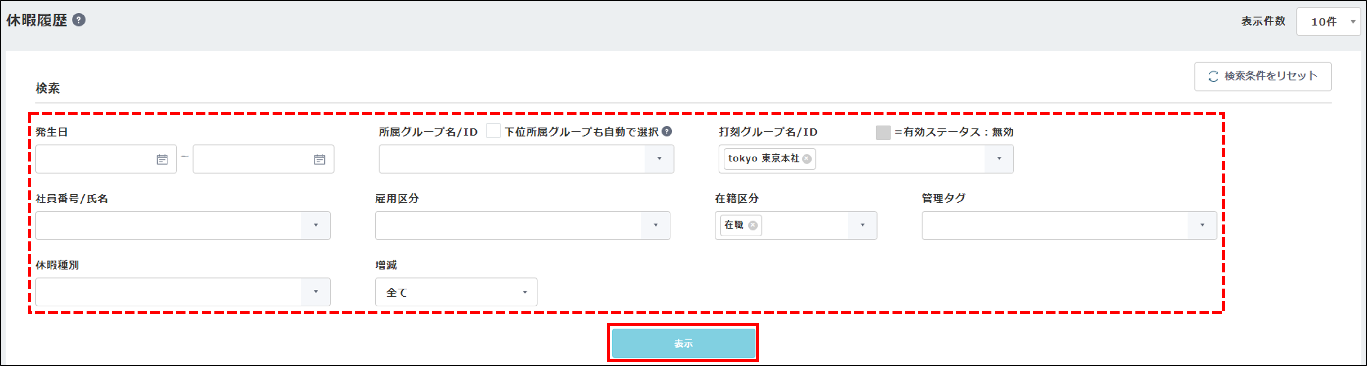 従業員ごとに、休暇付与・取得状況・消滅などの履歴を確認する方法をご案内します。