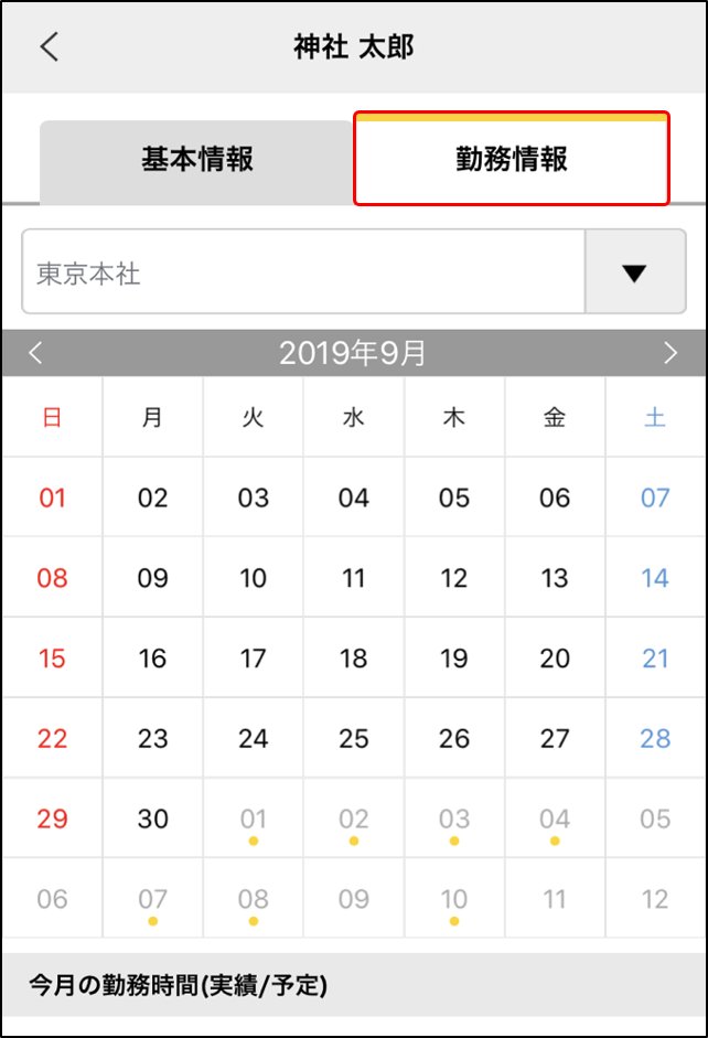 5.[勤務情報]タブをタップします。