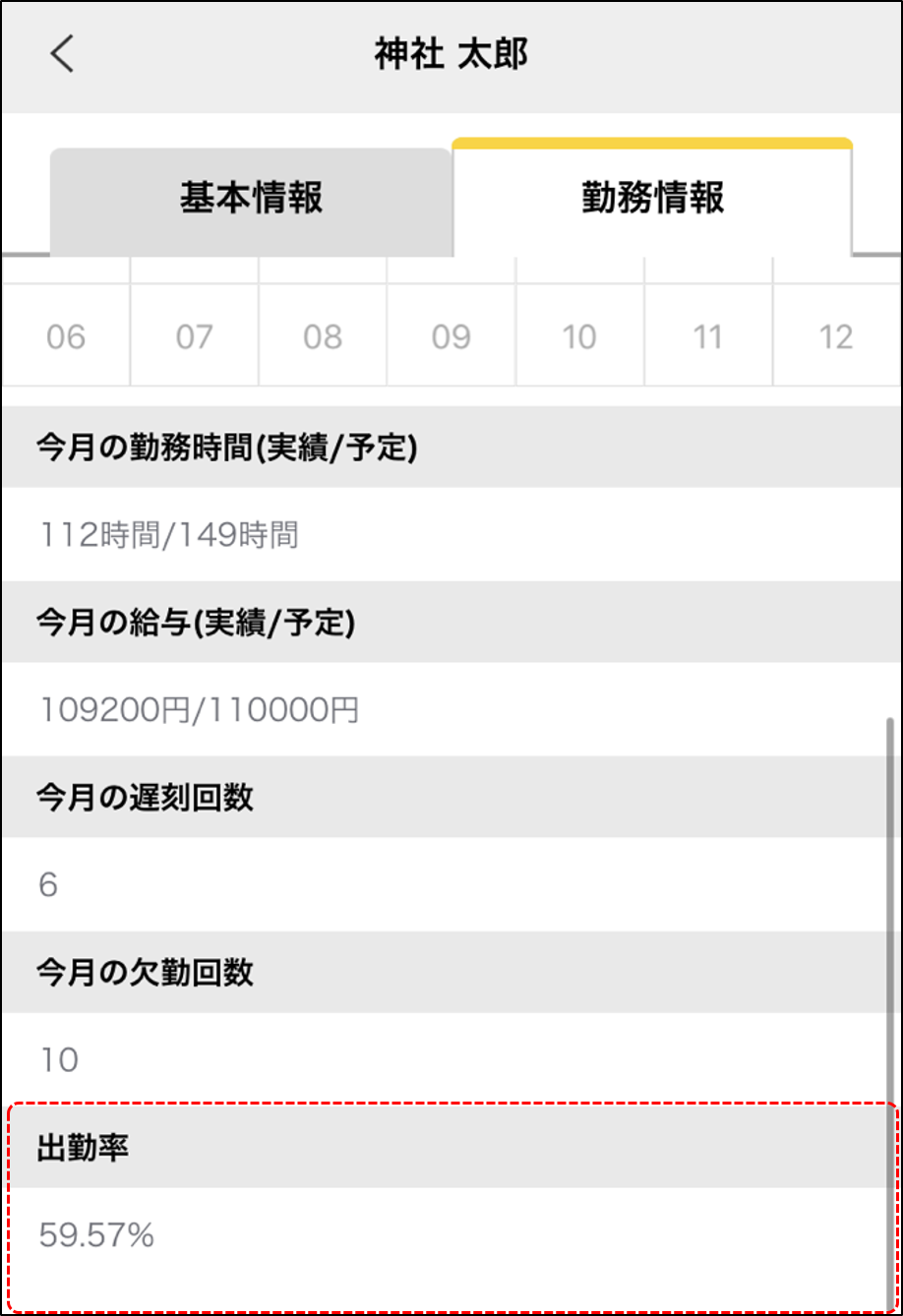 6.下にスクロールすると出勤率が確認できます。