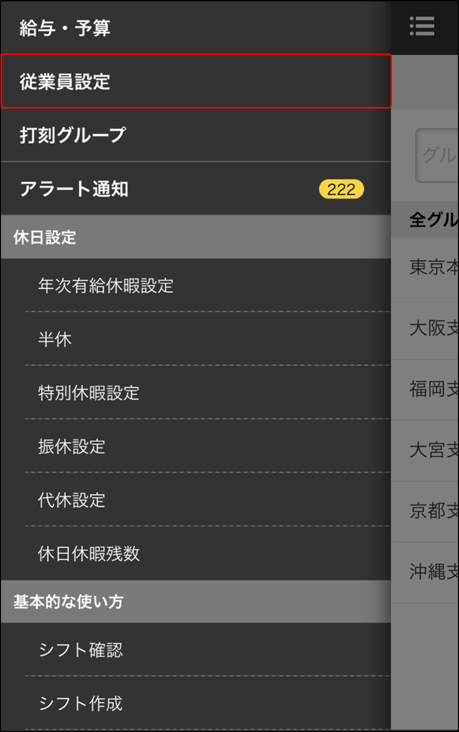3.[従業員一覧]をタップします。