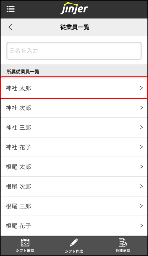 4.該当の[従業員名]をタップします。