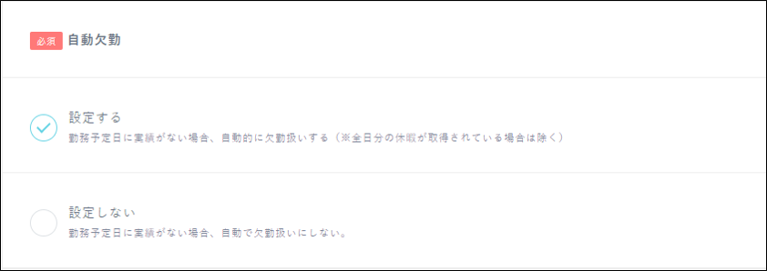 設定する:所定労働日に打刻がなかった場合に自動で欠勤扱いされます。