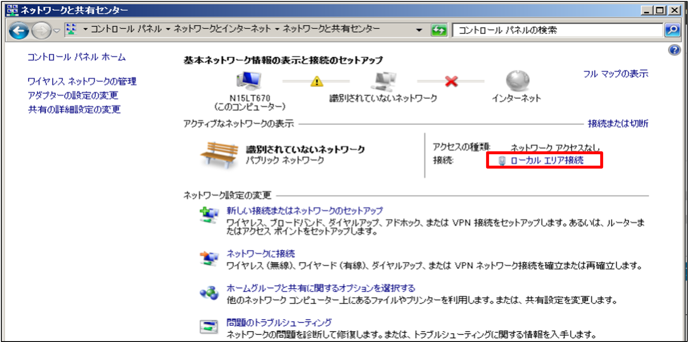 3.[ローカルエリア接続]をクリックします。