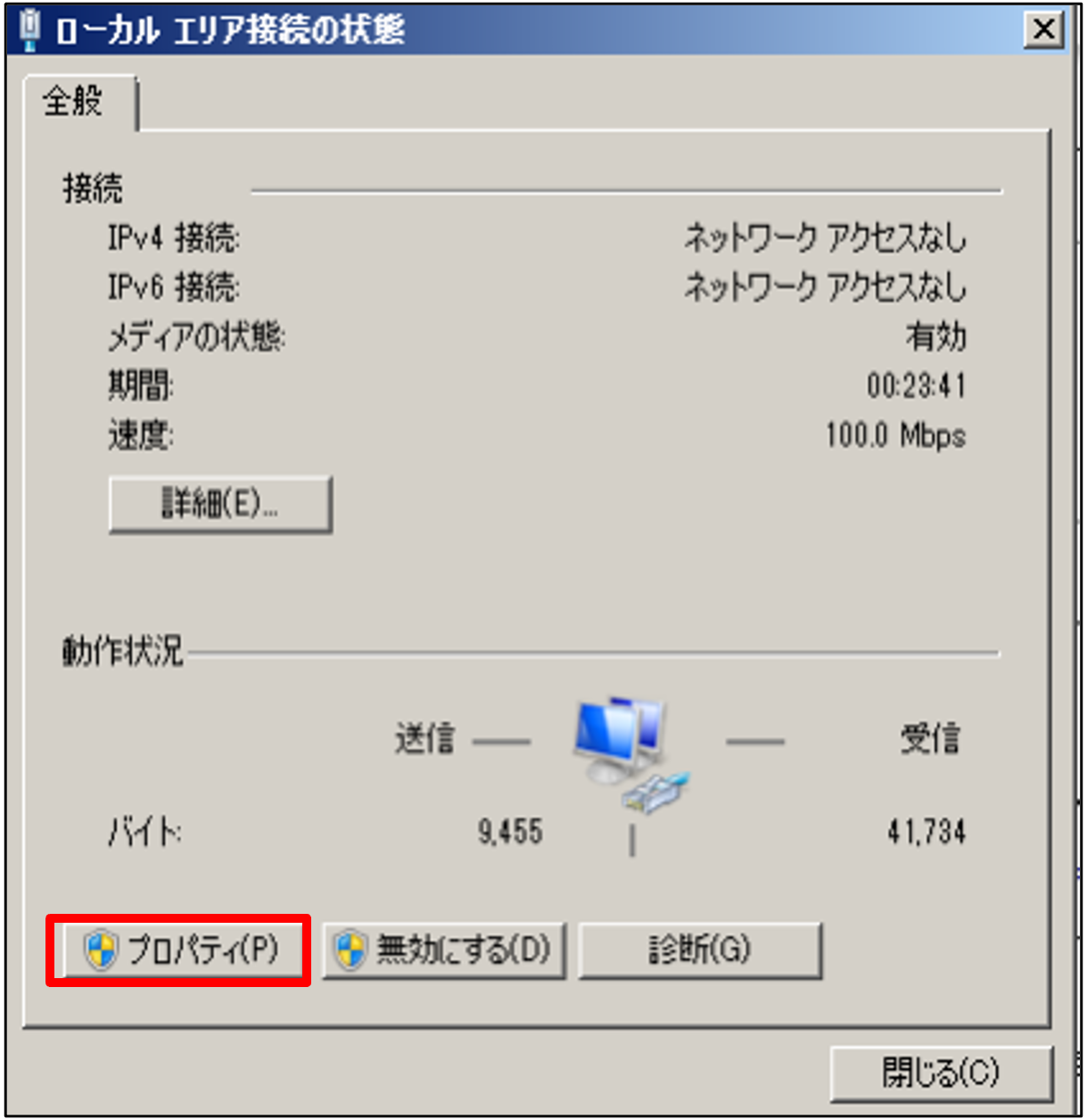 4.[プロパティ]をクリックします。