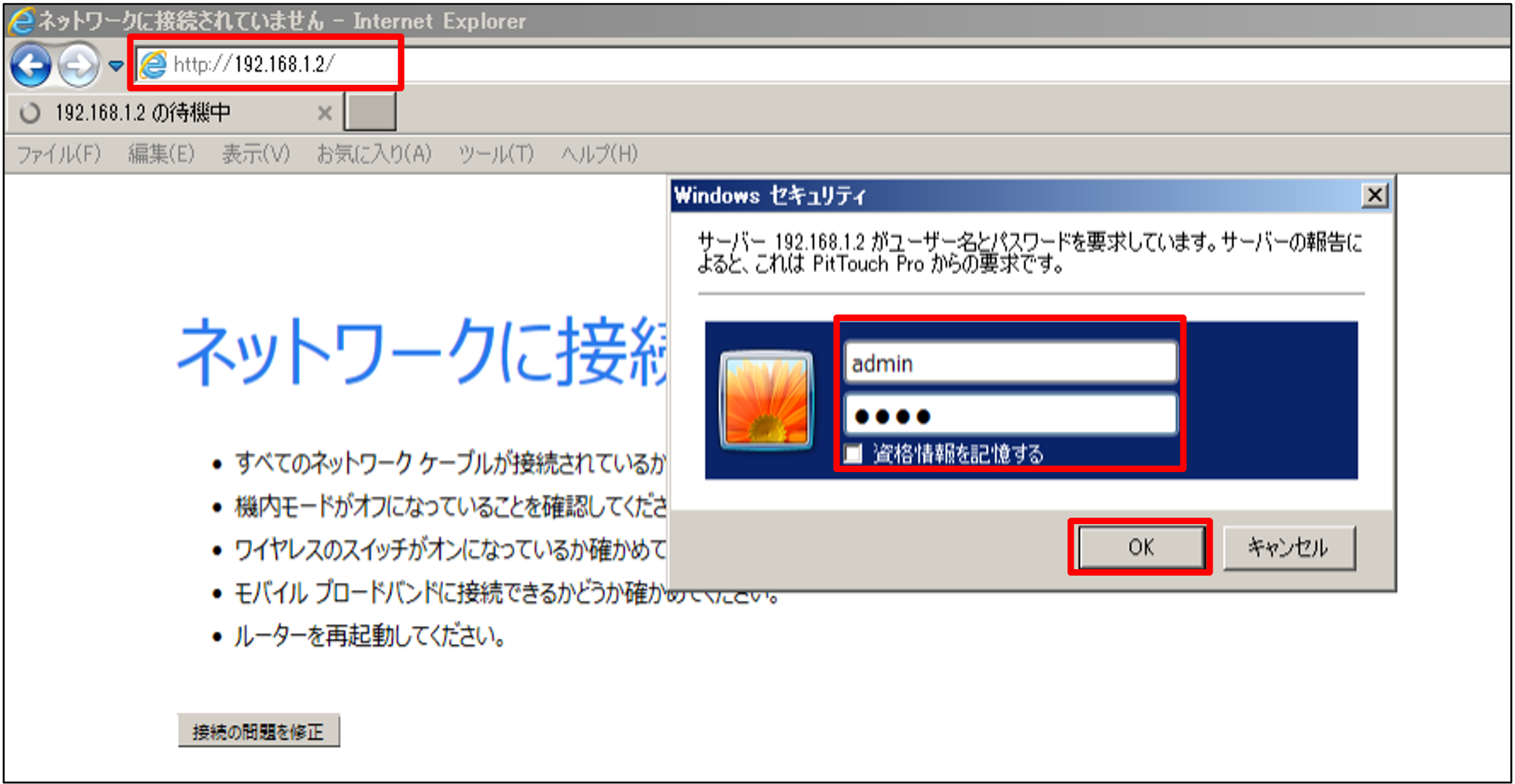 ①URLの欄に[192.168.1.2]を入力