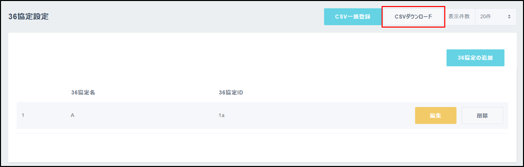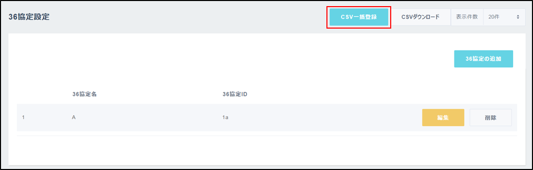 36協定の設定内容はCSVにて設定の新規追加や